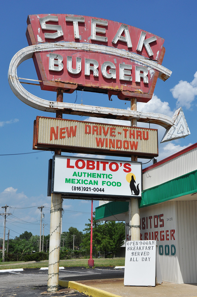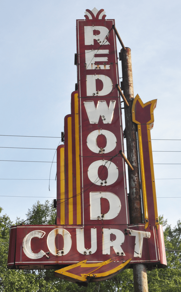 has been painted and updated with backlit plastic letters. Bummer. But the good news is, the bigger sign hasn’t been changed: