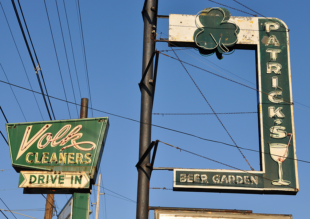 Ready for another heartbreaking round? The Volk Cleaners sign in Louisville, KY is gone now. The Patrick’s sign on the right is still there: