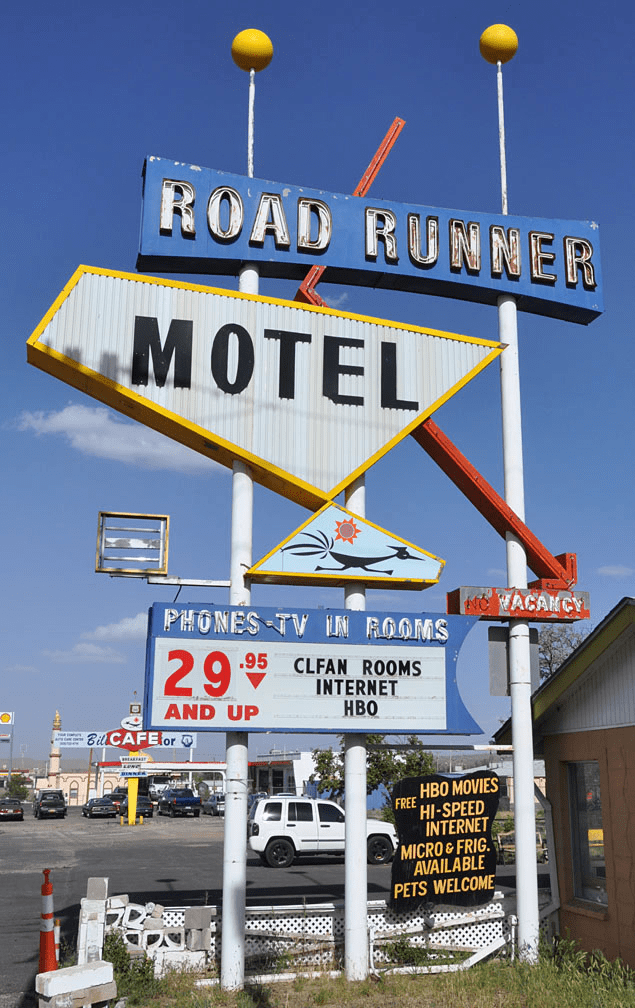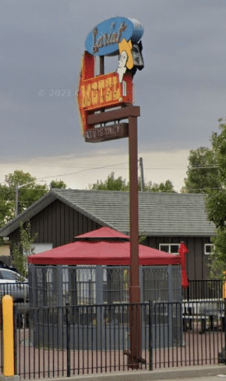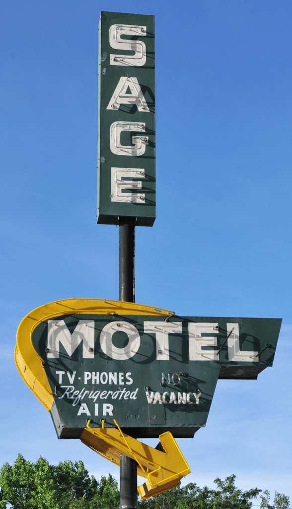 It was recently removed and installed in front of the motel, replacing a less exciting box sign: