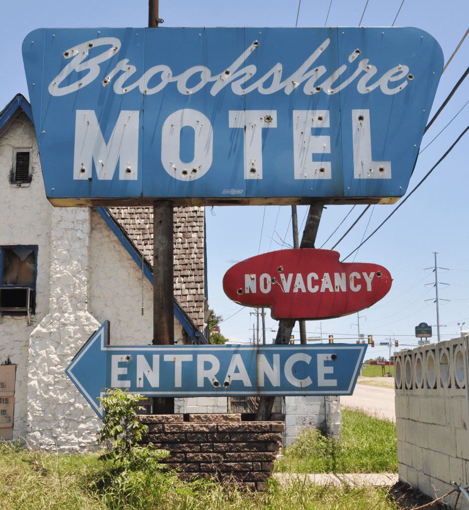 This sign in Tulsa, OK is gone now. The motel suffered a fire in 2019 and was demolished the following year: