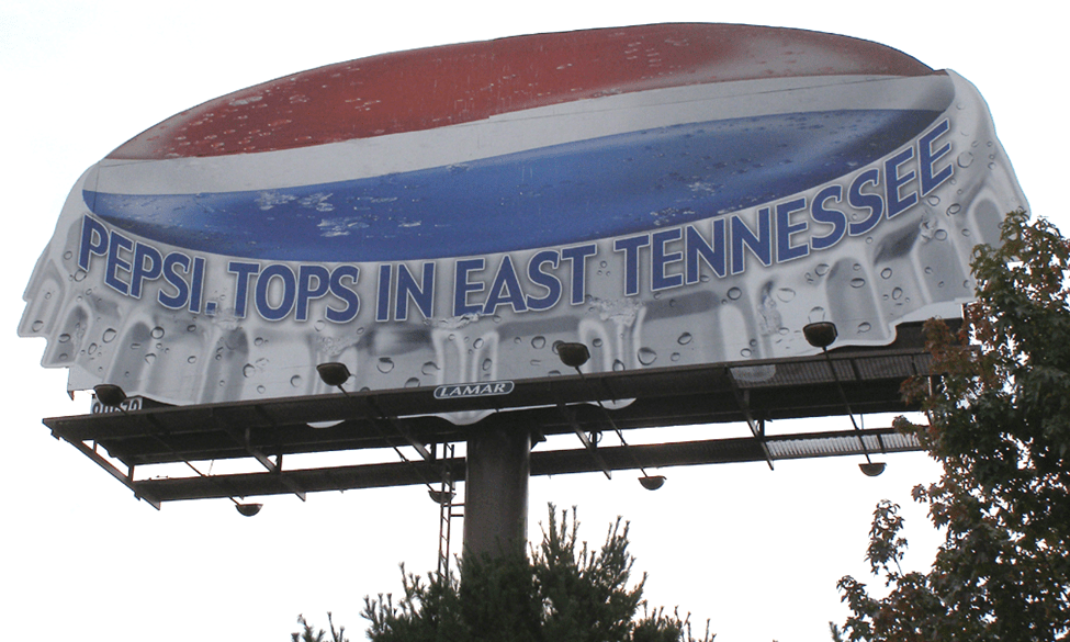 Moving on to the “T” states… This billboard sign in Johnson City, TN next to I-26 is gone now. It had been there since at least 1981: