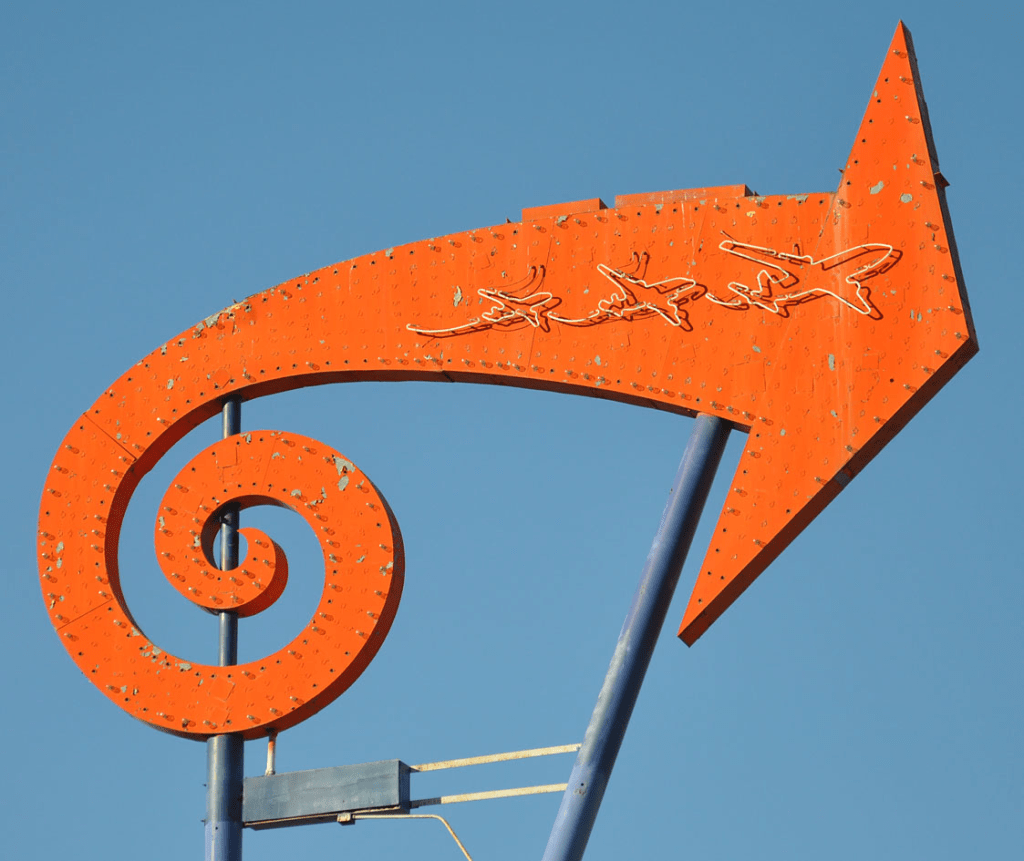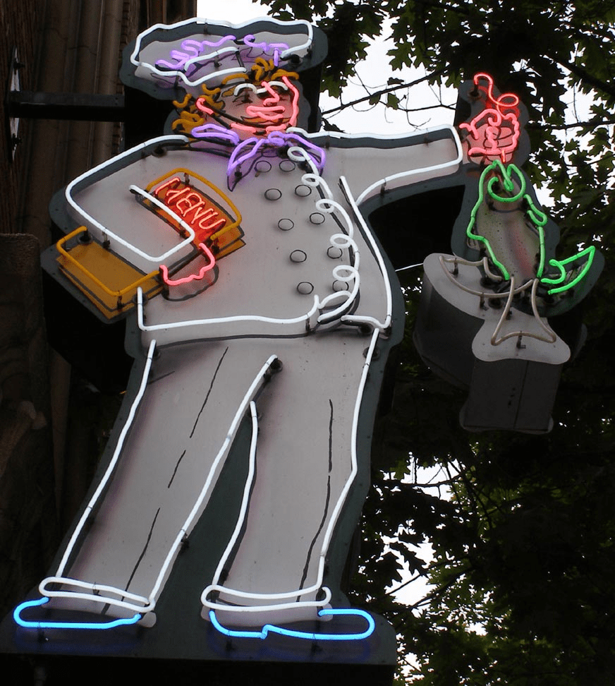 Has changed names from Frank’s Power Plant to Patti’s Power Plant. The nice “skeleton” neon tubing on top of both sides for Frank’s has been removed and replaced with plastic panels for Patti’s: