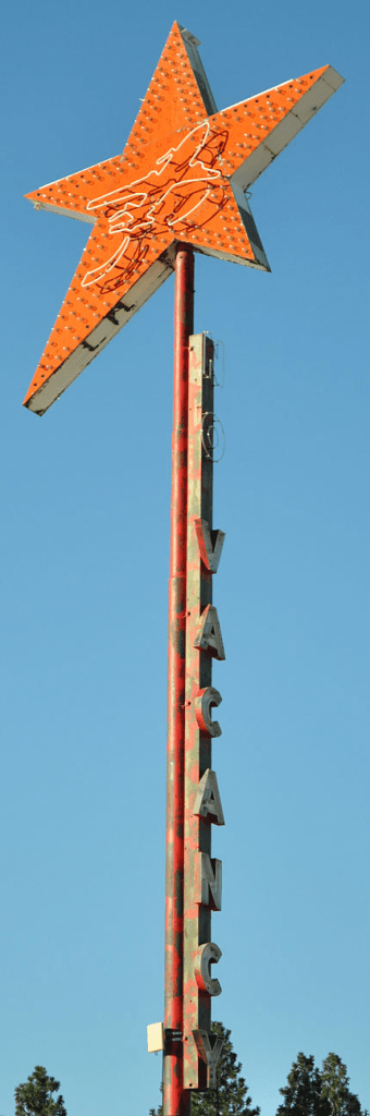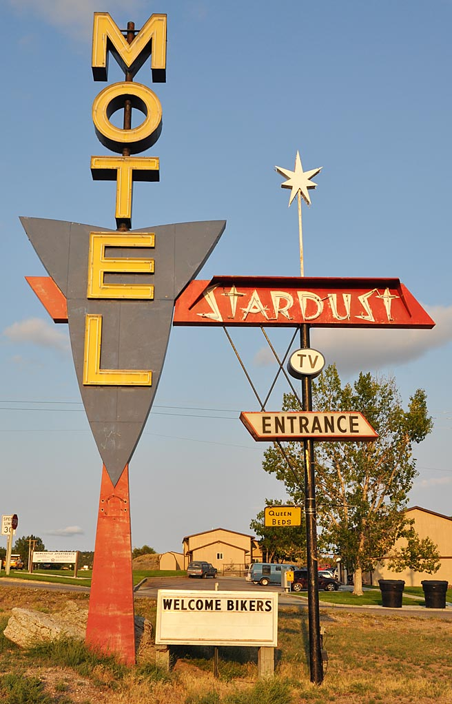 This motel in Newcastle, WY had double entrances — a sign for each. The motel has been demolished for a Dollar General and both signs are gone: