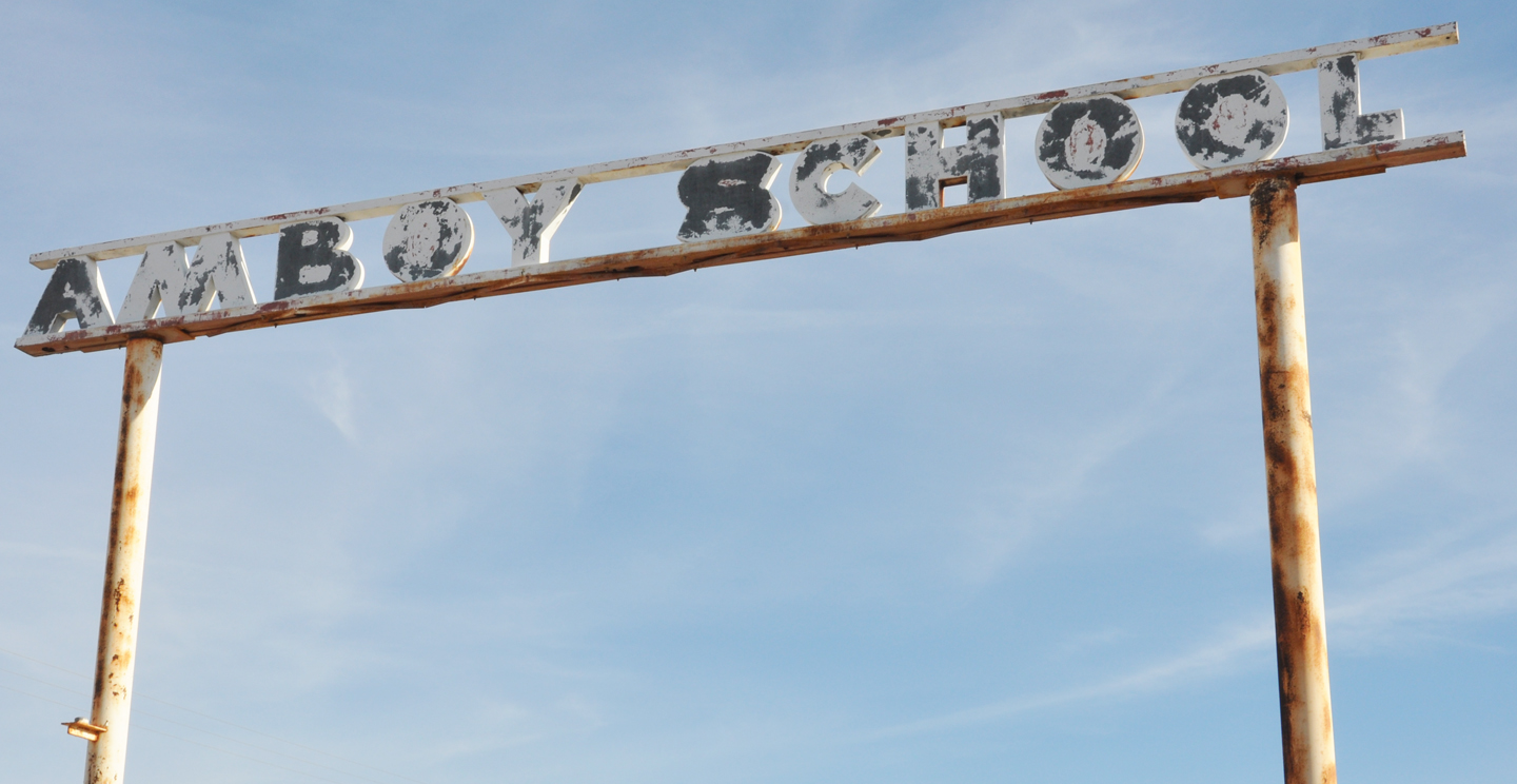 I made a pitstop in Amboy, CA to shoot the repainted Roy’s Motel/Cafe sign and shot this guy which I don’t think I had noticed before. The school closed in 1999 but this sign remains: