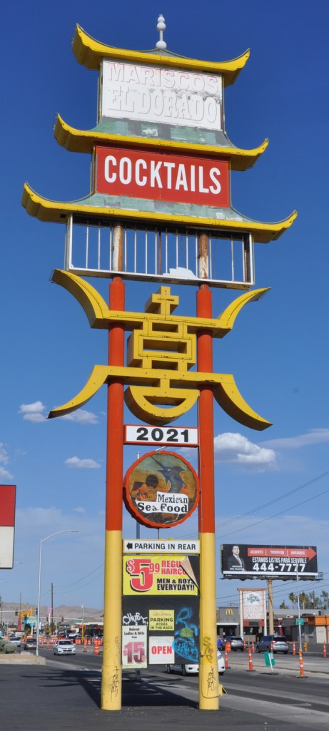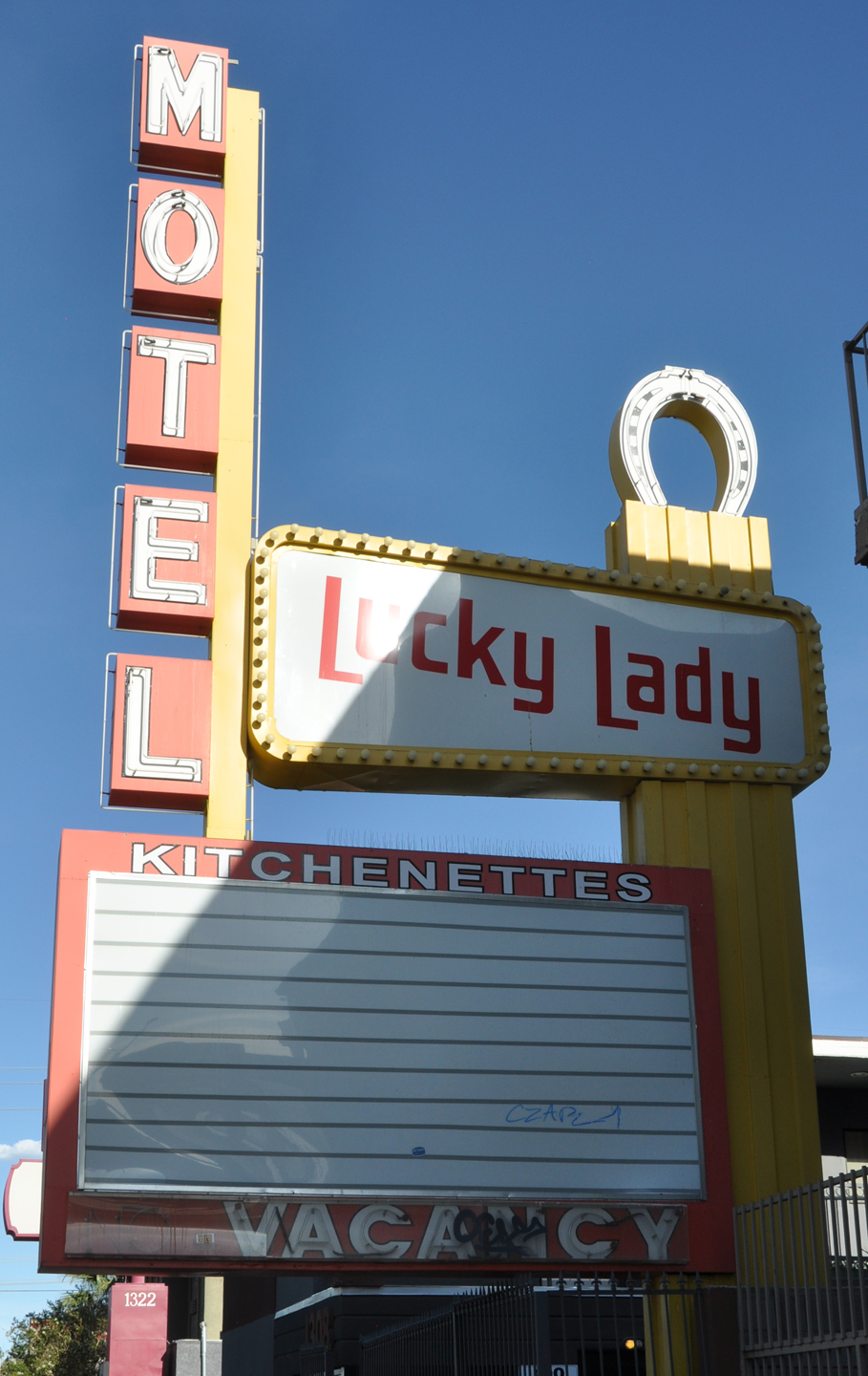 Let’s move on to some Las Vegas stuff. Unfortunately, this sign was partly shaded by the trees but I still love the cars, shapes, etc.: