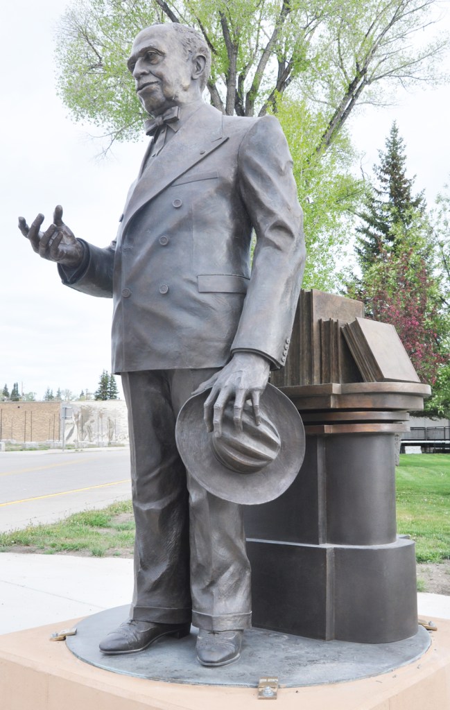A couple of statues. This bronze statue of James Cash Penney (the founder of J.C. Penney stores) is now in Kemmerer. It was installed in the lobby of the headquarters in Plano, TX since around 1992. I think his legs are short (and arms so long) to compensate that he was meant to be seen from up on top of pedestal. Much like the Birmingham Vulcan statue. The Plano office closed and the statue was moved here last year. The still-operating (!) JC Penney store in Kemmerer was the very first one and this statue is installed in the little park across the street:
