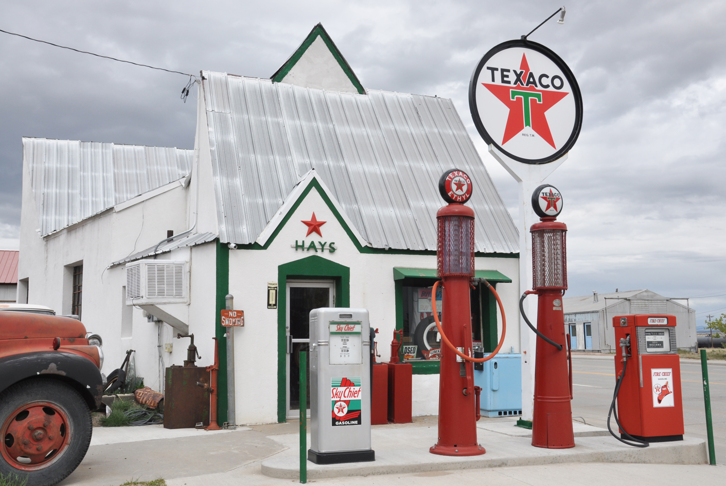 And two gas stations froms Rawlins. This building was recently restored as a Texaco (which I believe it was originally) with pumps & signs added: