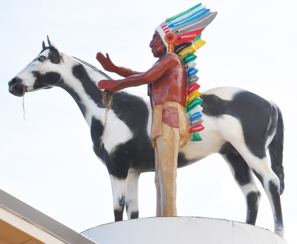 Let’s close with a couple of non-signs. This Indian and horse are in Miles City. Despite my best efforts, I can’t find any info about their history: