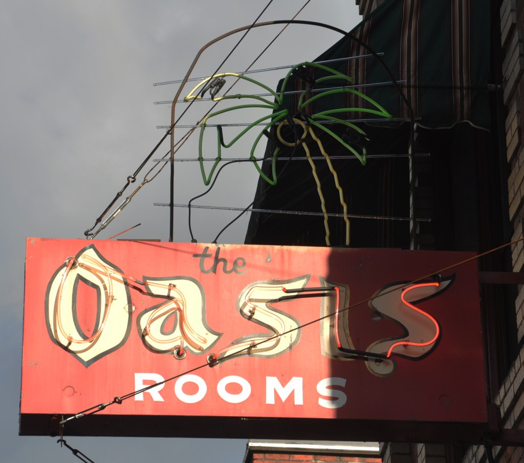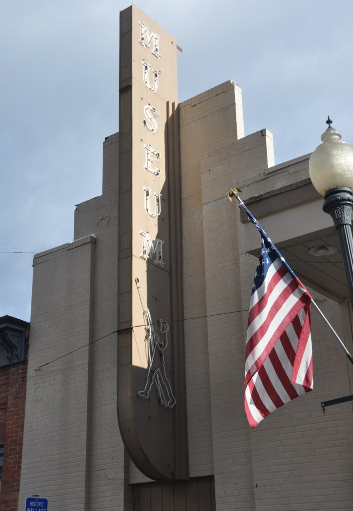 The Oasis Rooms in Wallace was a brothel for many years — and now this building houses the Oasis Bordello Museum. This sign was displayed in the basement but then moved outside in recent years. I don’t know if the coconut (?) tree is original or created when the sign was hung: