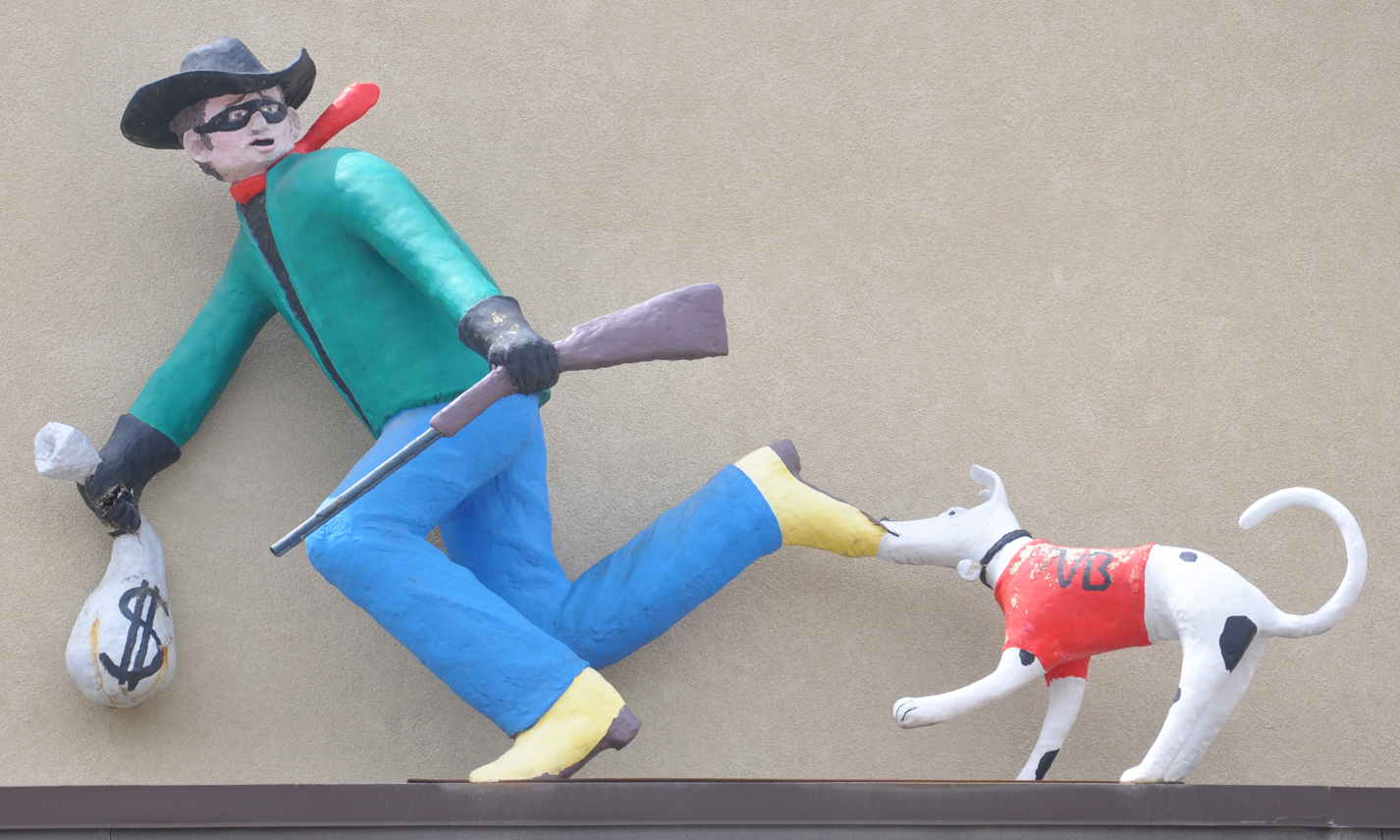 This cute sculpture is on the side of the Valley Bank in Kalispell: