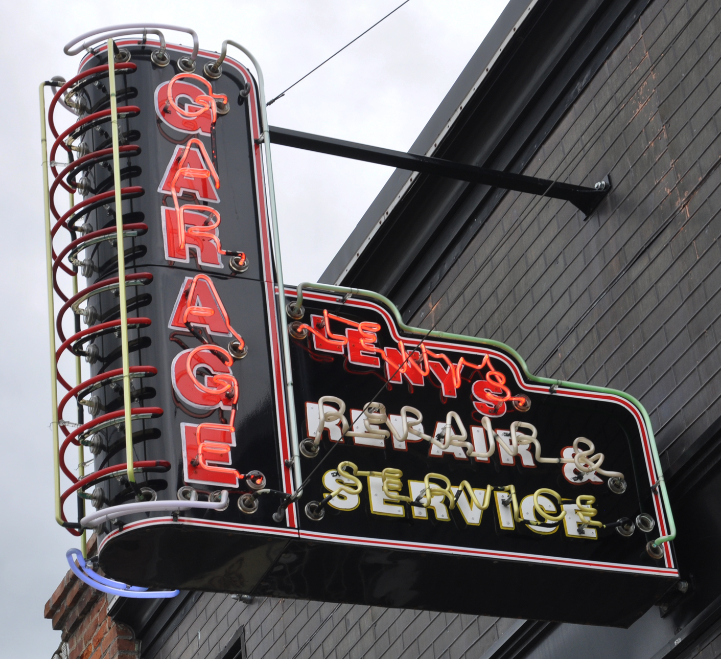 This sign was installed just a few years ago. It appears that new partial text panels were tacked over a vintage sign that the restaurant got from somewhere: