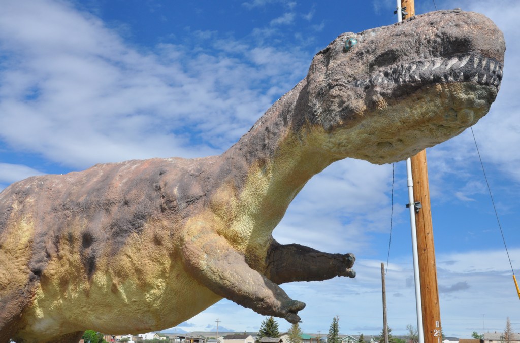 There are three wonderful dinosaurs in Choteau in front of the Oil Trail Museum. Here are two headshots: