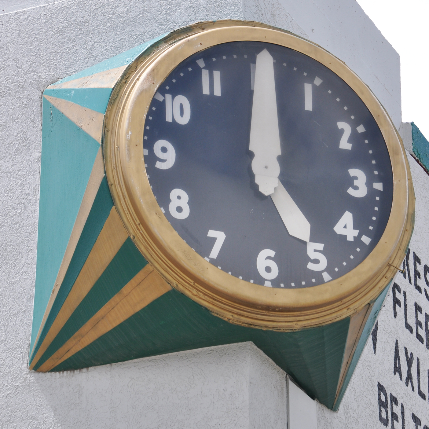 This clock is on the corner of a former Husky gas station (now a muffler/radiator shop):