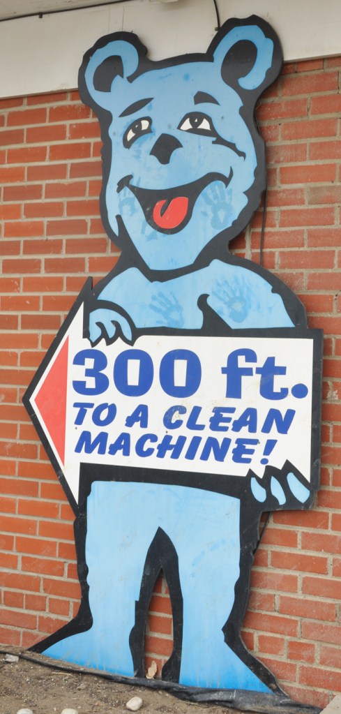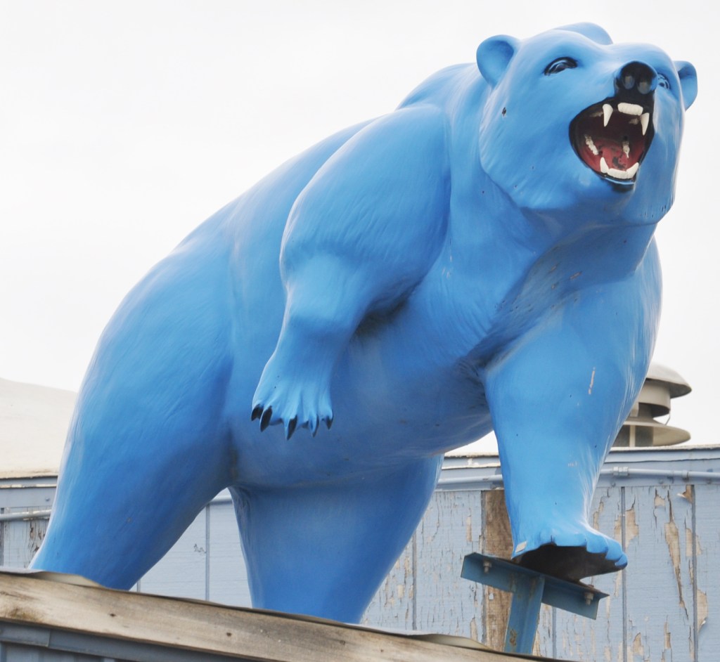 A classic fiberglass bear on the roof at the Blue Bear Car Wash in Havre:
