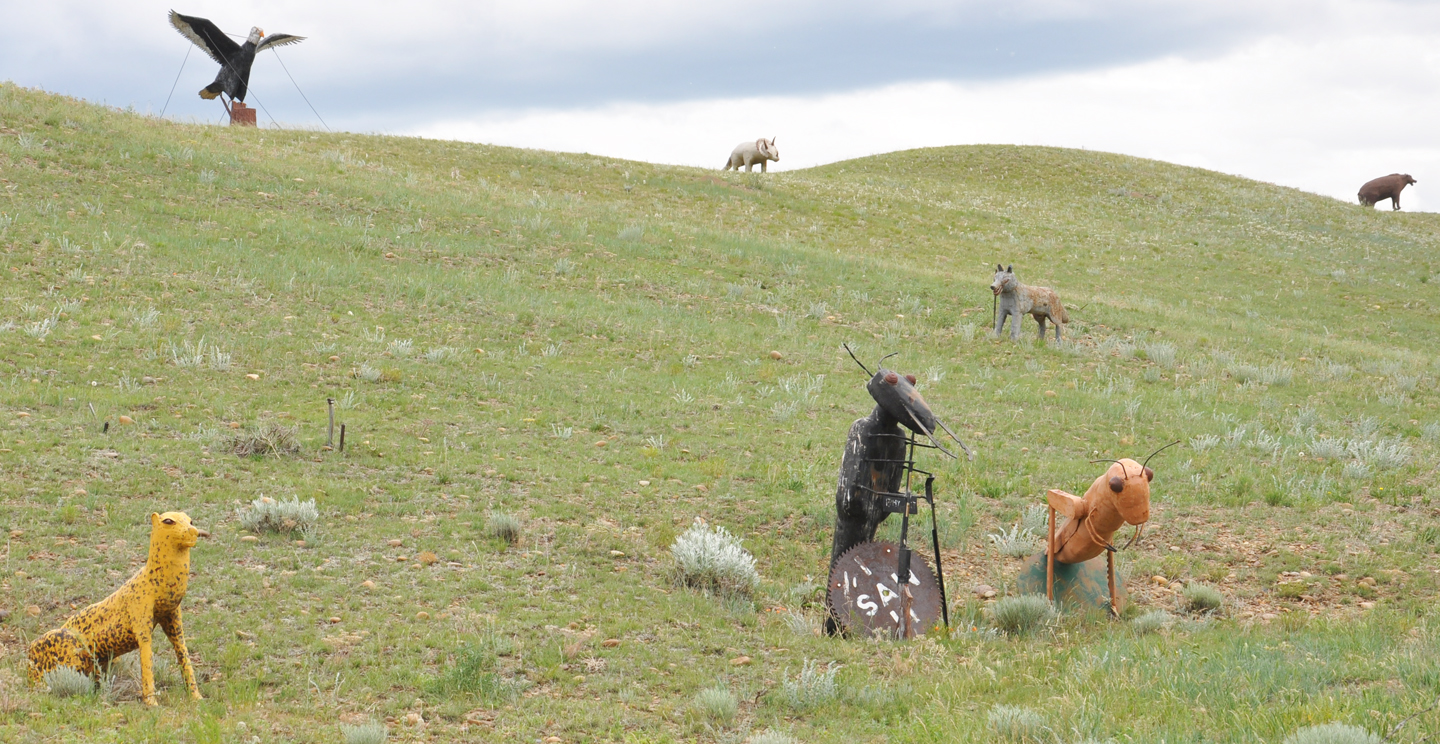 And here are a few non-signs. A hillside of metal sculptures created by Buck Samuelson in Glasgow: