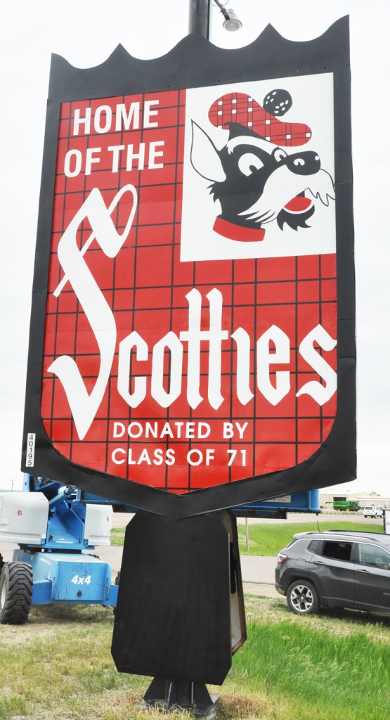 This one stands a the corner of Scotties Pride Drive which leads to Glasgow High School. The Scottish Terrier is the school’s mascot. This sign was being repainted as I took this photo: