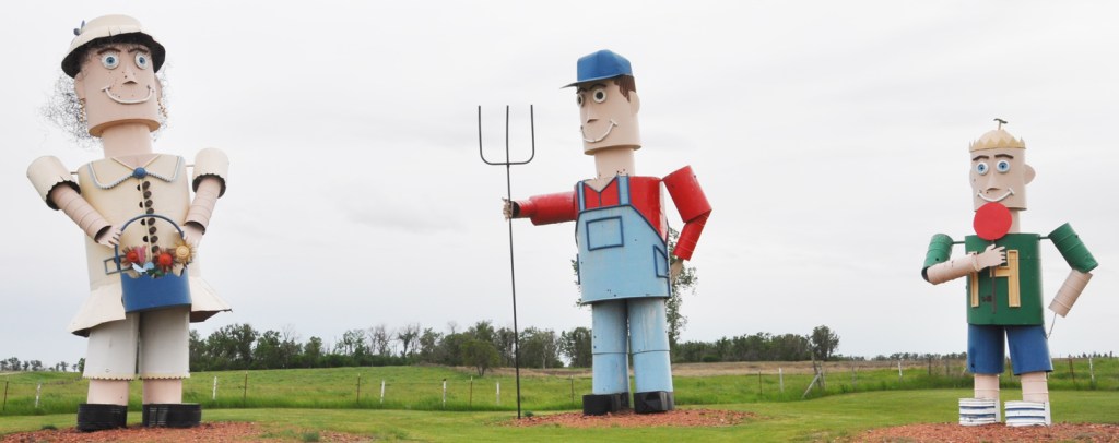 Moving on to some non-signs. The tiny town of Regent, ND has become a tourist attraction thanks to the creations of resident Gary Greff who has built dozens of ginormous scrap metal sculptures. Here are just a few. The Tin Family: