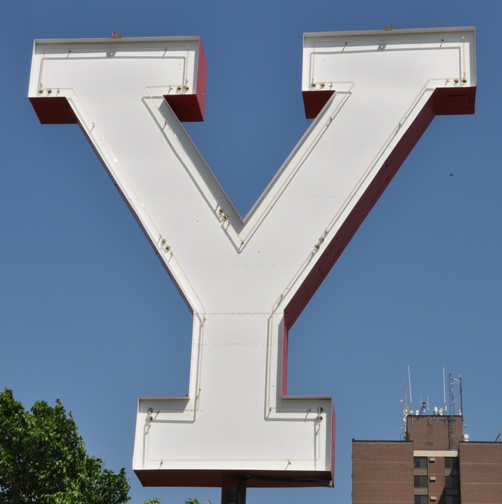 Somehow, this sign below at the same location got approved and listed on the National Register of Historic Places earlier this year as an example of “early 1960s design” but it is clearly later than that and was not the original sign: