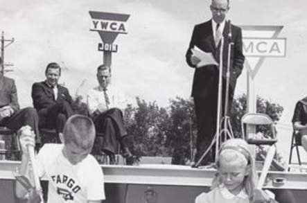 The groundbreaking at the YMCA in 1961 with the two original signs in the background: