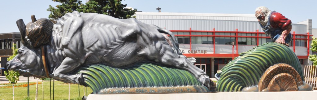 This statue in Fargo from 1982 was restored in 2019. “Sodbuster, San Isidro” depicts a plowing farmer and a pair of oxen: