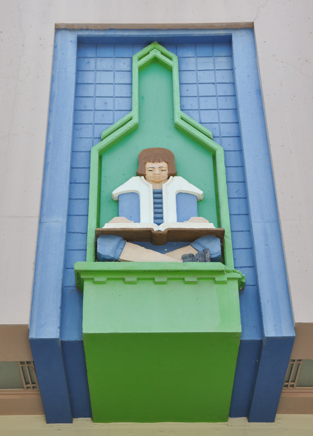 This bas relief, Art Deco detail is at Grover Cleveland Elementary School in Pasadena: