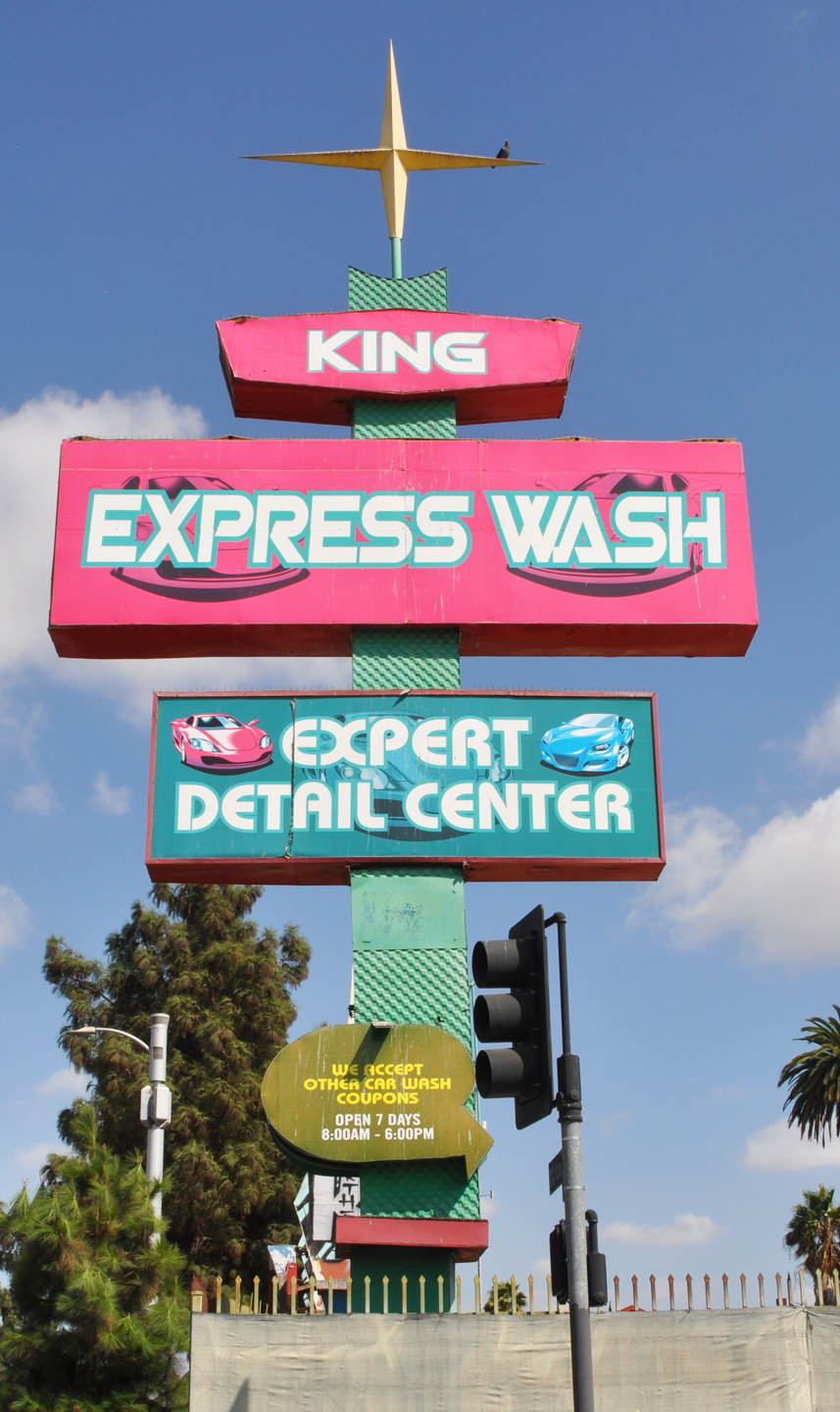 This mid-century car wash in L.A. looks like it’s being demolished. The sign is still there. Shoot it while you can since it might not be around much longer: