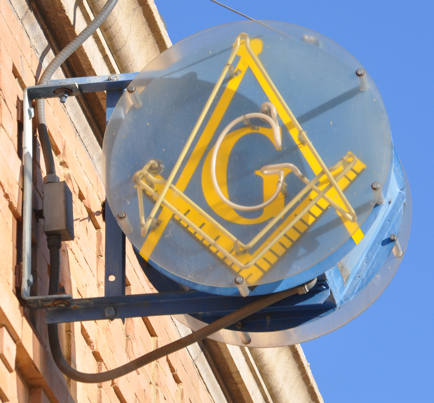 This sign is on the side of a building in West Hollywood. A true oldie with add-on letters, a beaded tin border, and opal glass letters at the bottom: