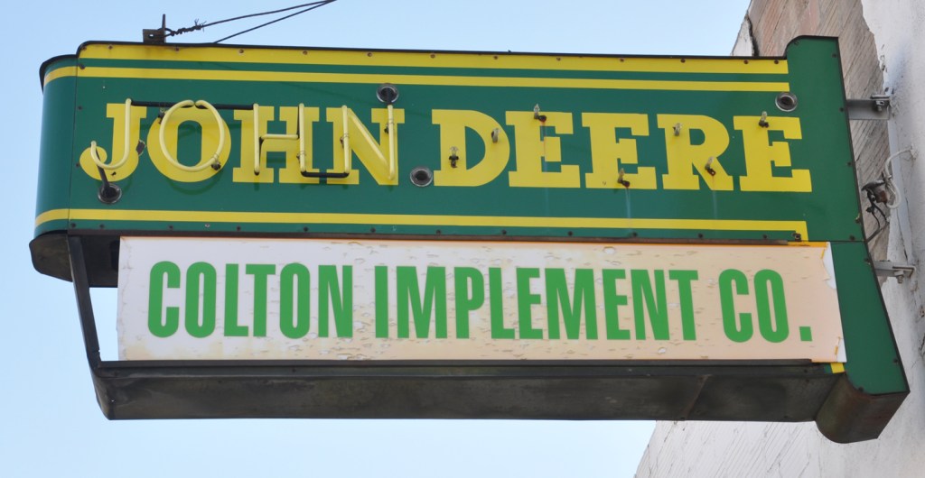 This sign hangs in downtown Colton despite the business being closed. These Deere signs are very popular with collectors and I can’t think of any like this one still on public display:
