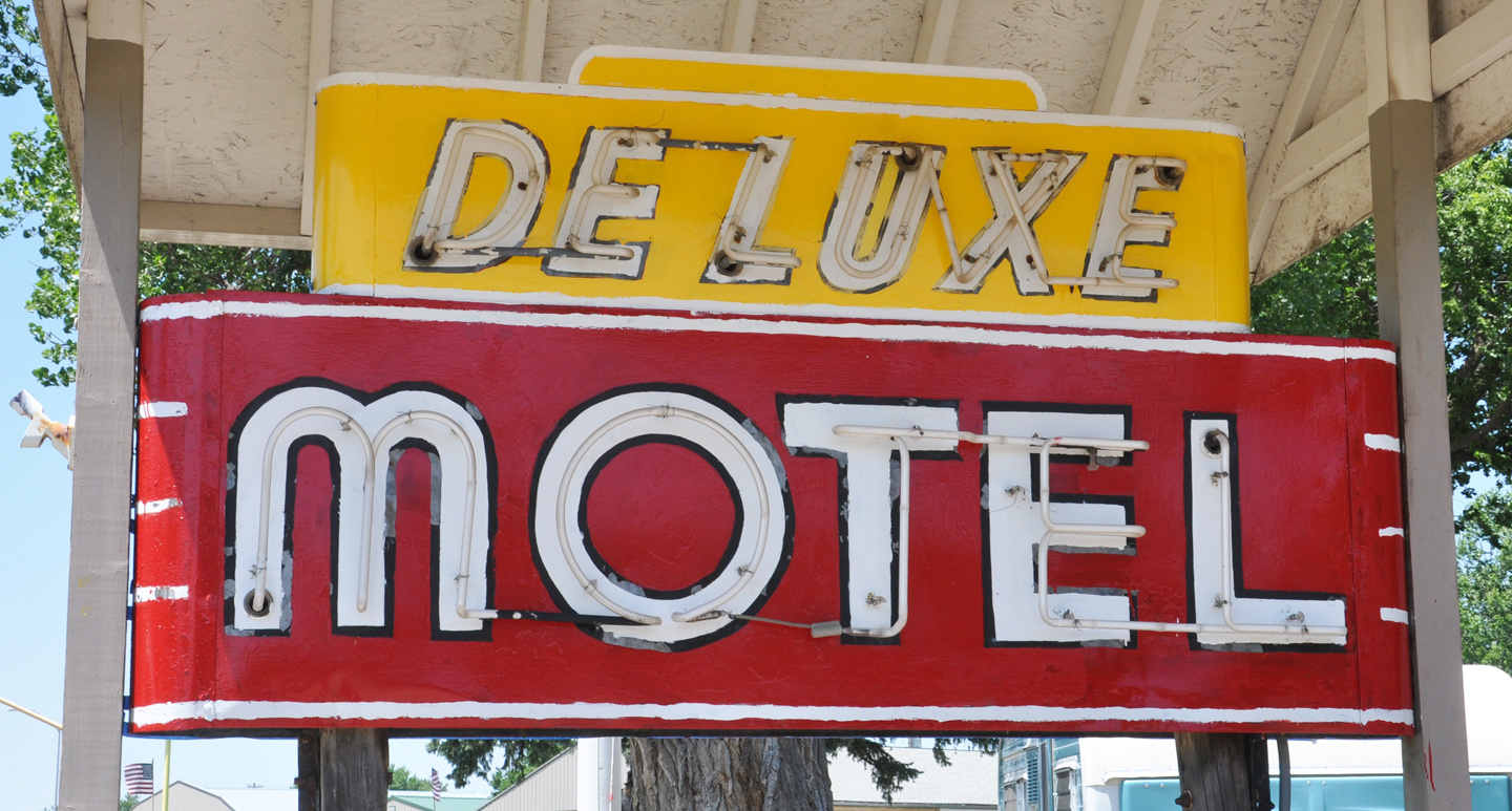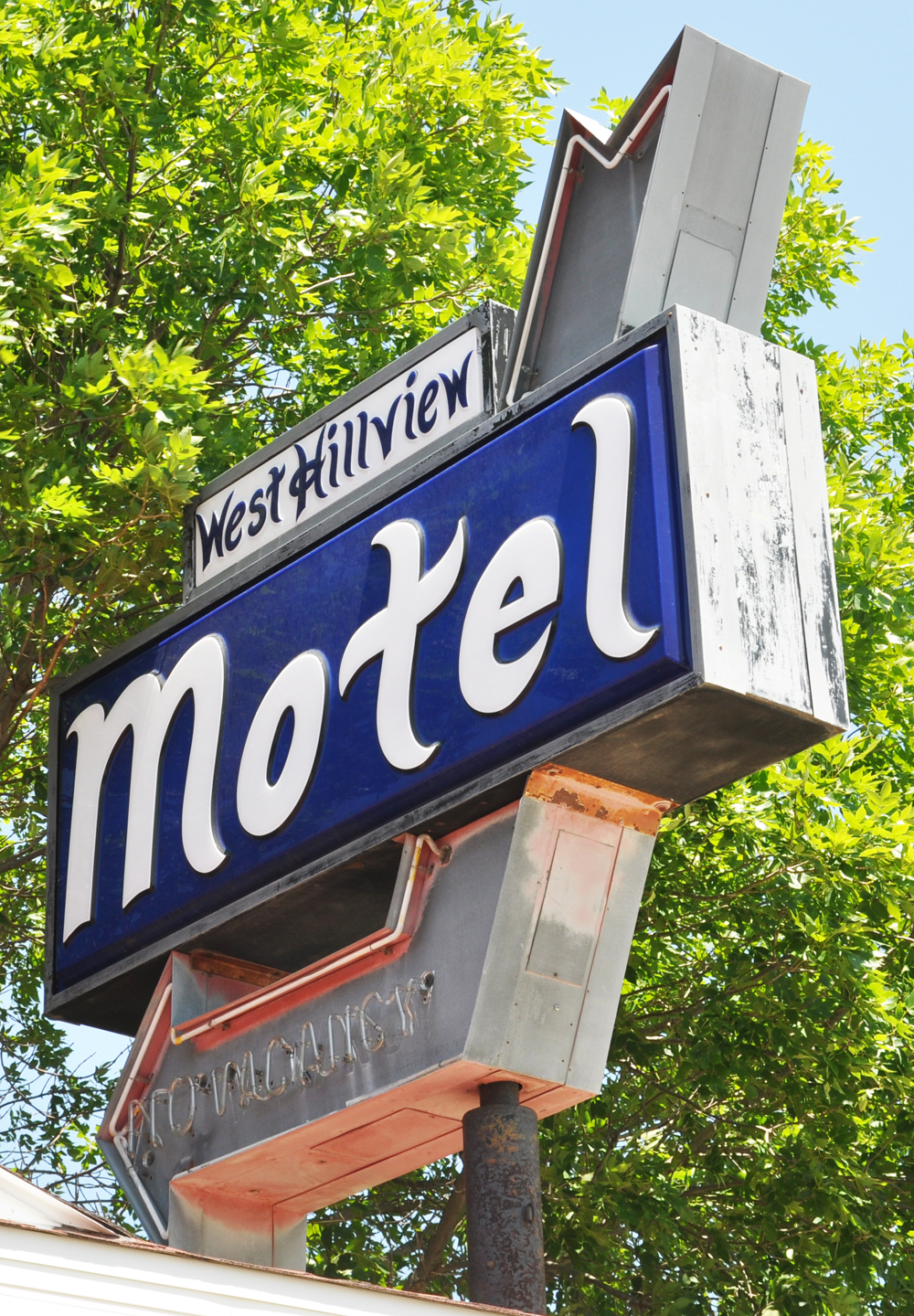 Let’s start with this sign in Thedford. There used to be an arrow-shaped sign on the building next door to the motel for the Arrow Cafe but that sign is gone now:
