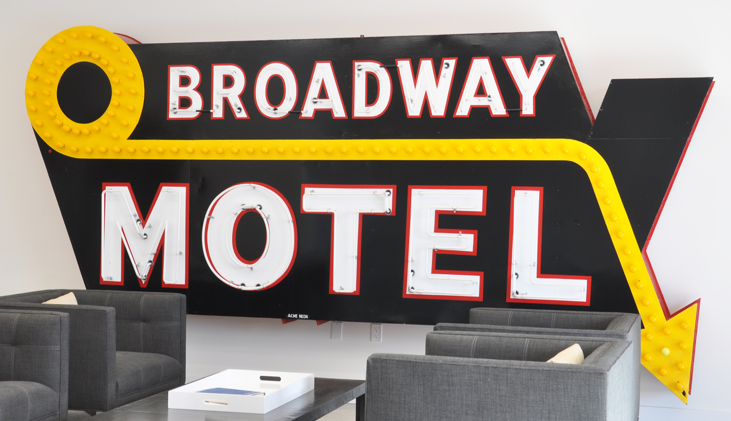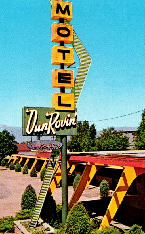 The former Dun Rovin’ Motel has been adapted for the Dun Rovin’ Plaza used car lot: