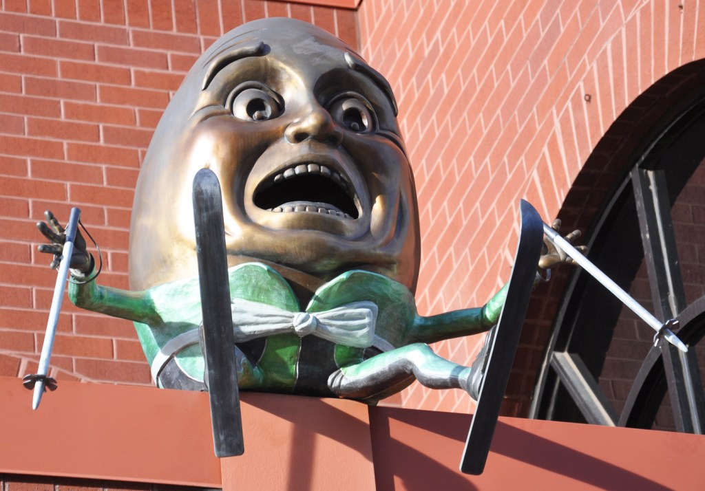 There are about 8 different Humpty Dumpty statues in downtown Colorado Springs: