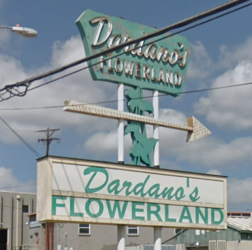 This sign was still fairly intact in 2015 — from Google Street View: