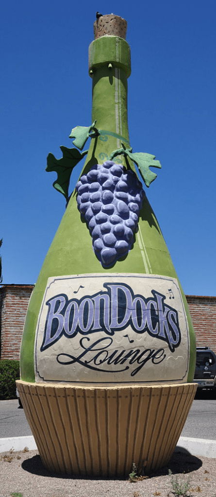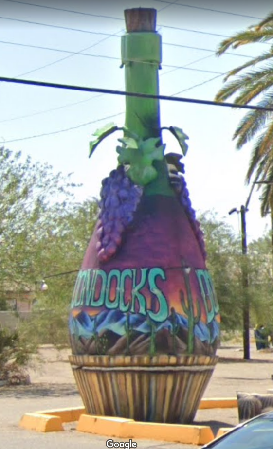 The giant wine bottle at the Boondocks Lounge in Tucson, AZ got a new paint job earlier this year. Here’s what it looked like in 2012: