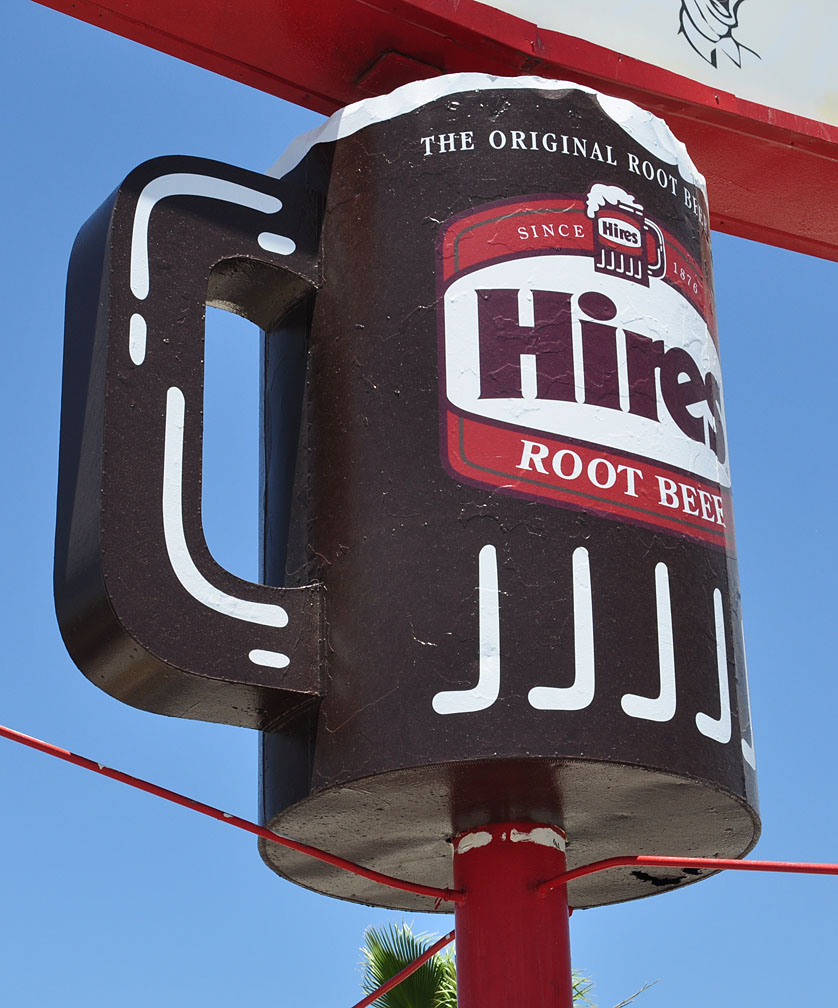The former Frostop in Tucson, AZ has housed at least four different restaurants since 2008. The building and mug were repainted for each new tenant. Here it is in 2008: