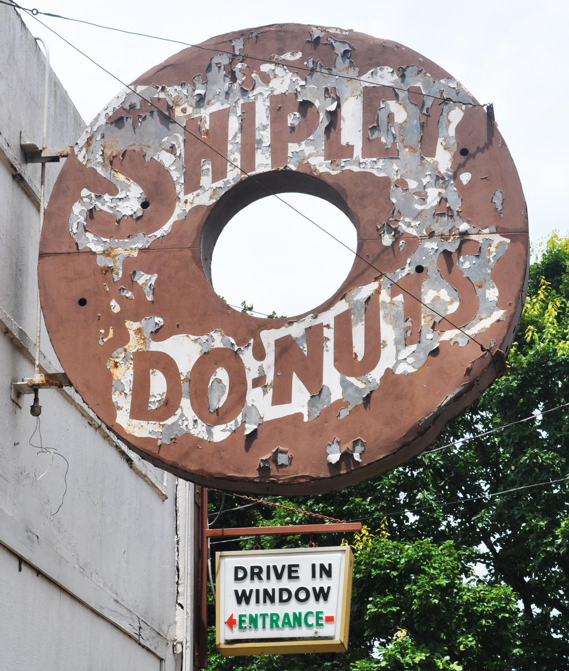 This Shipley Do-Nuts in Greenville, MS has closed and the sign is gone now. I believe the only sign like this left is the one in Houston, TX: