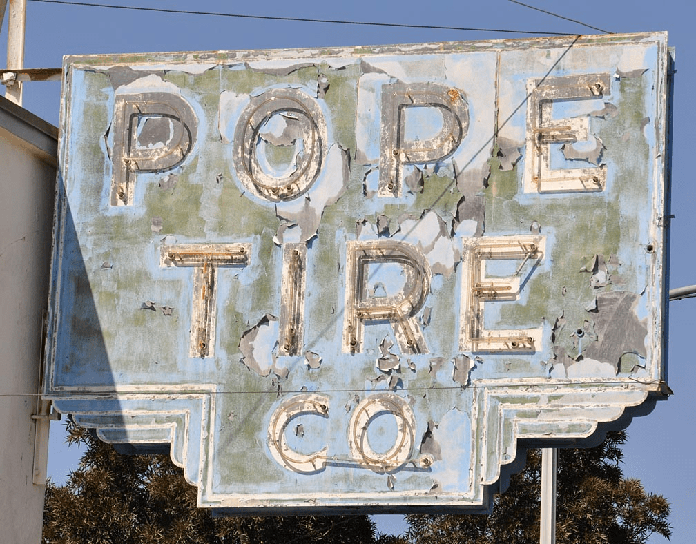 The Pope Tire sign at the long closed store in Fresno, CA is gone now: