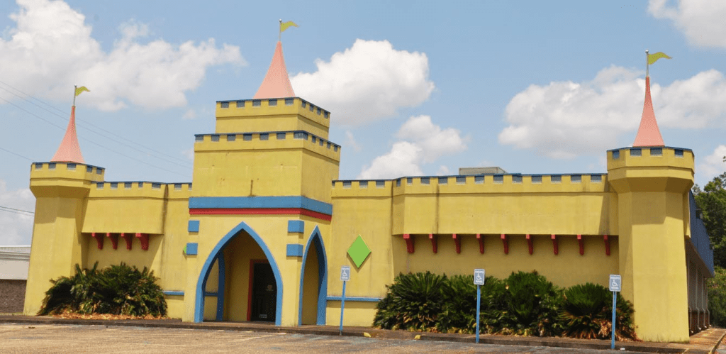From the Fake Castles pages — the Kidz Kastle building in Dothan, AL is gone now: