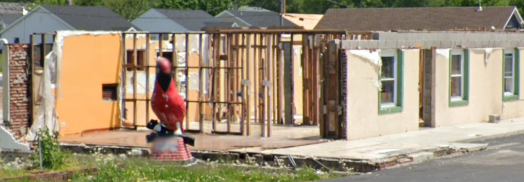 is still there and in good shape. The motel itself was destroyed in a December 2021 tornado but it is being rebuilt: