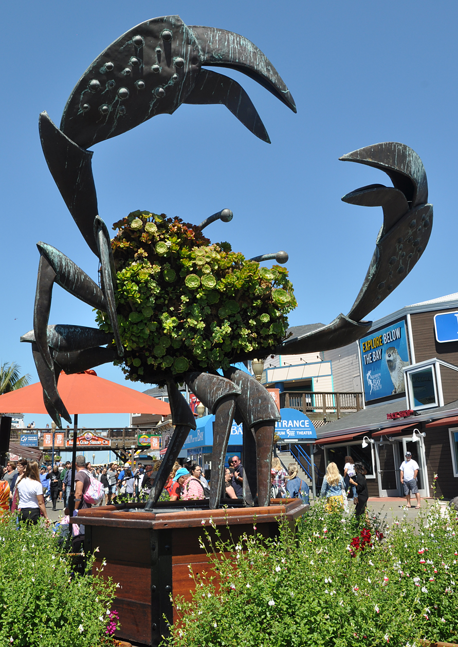 The crab succulent sculpture in San Francisco, CA has been replaced with a sea lion succulent sculpture: