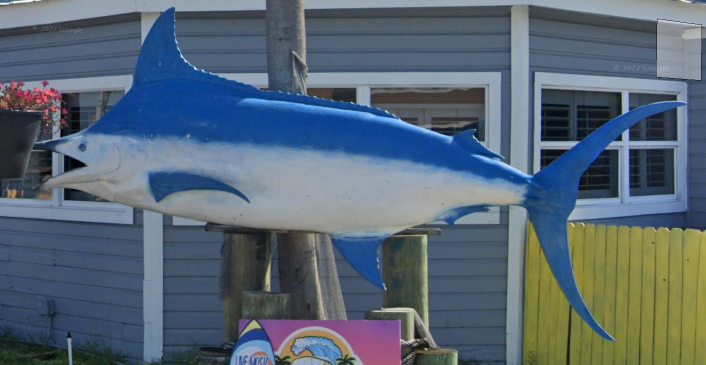This long-neglected giant marlin statue in Tarpon Springs, FL: