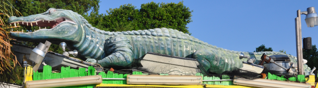 This giant gator and the building that he rested on in Panama City Beach, FL are gone now: