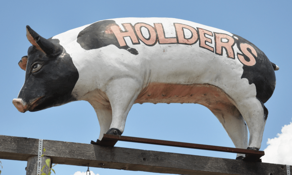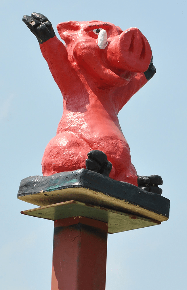 This razorback hog in Benton, AR was one of two statues which are gone now:
