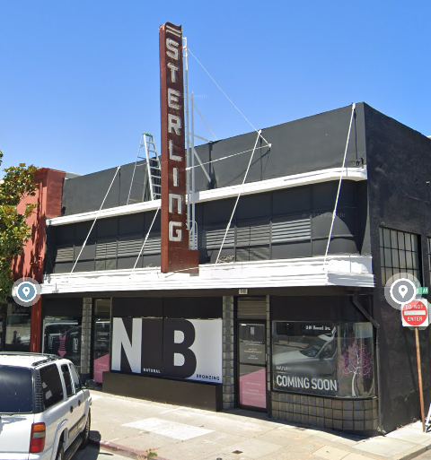 The former Sterling Cleaners sign in Burlingame, CA has been repainted yet again. Earlier this year, it went from blue to pink. Now, it’s brown to signify the new tenant of Natural Bronzing. The building used to be white which was nicer. Dark grey is so hideously trendy these days: