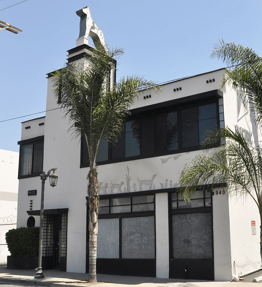 The former Moxley Veterinary Clinic in Los Angeles, CA is apparently being gutted. I don’t know if the sign tower will return or if the Art Deco animal reliefs are being preserved: