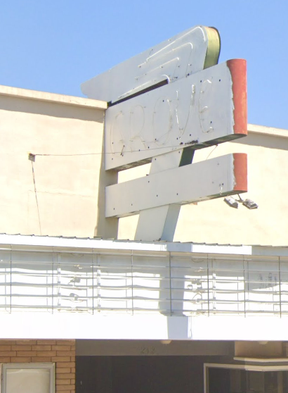The indignity of it all. The former Rex Theatre in Borger, TX has housed retail space below for many years but the nice Art Deco upper half remained: