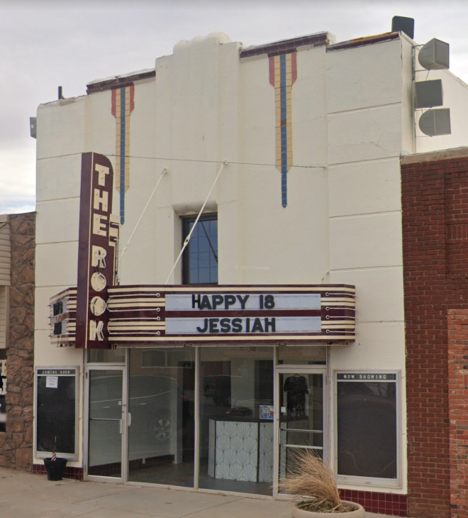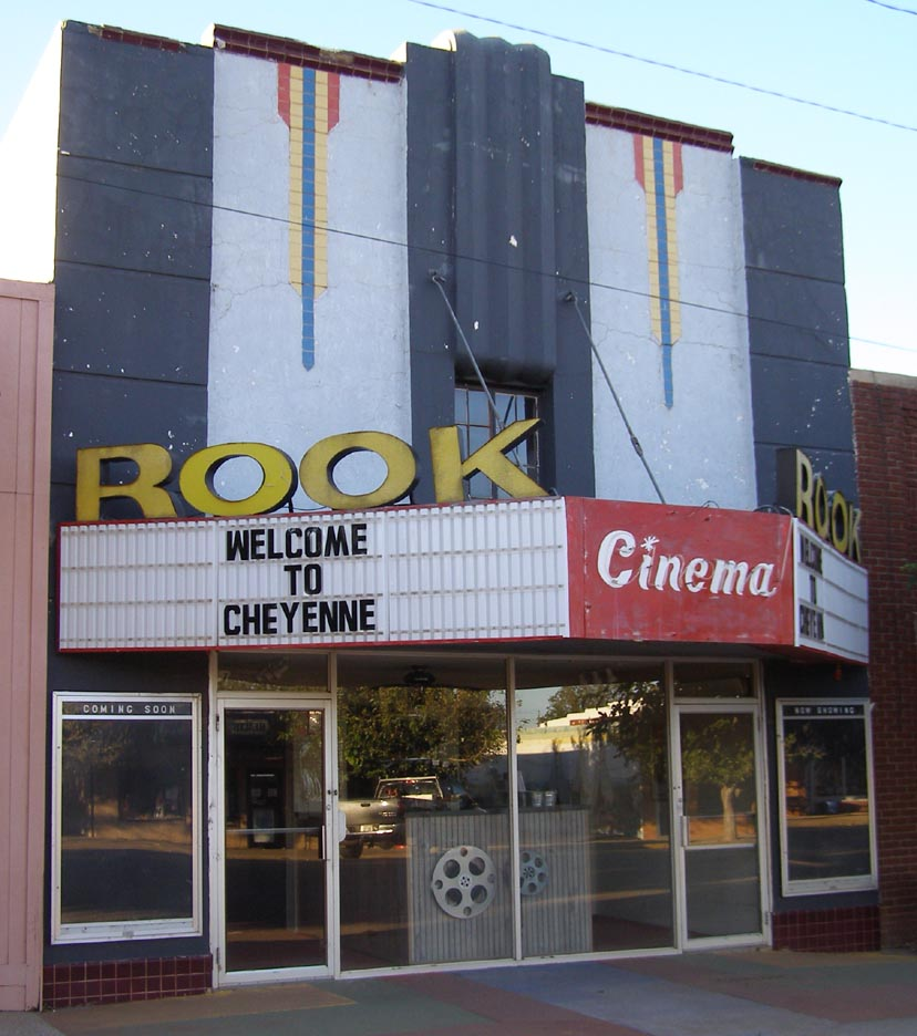 The Rook Theatre in Cheyenne, OK has a new marquee sign based on the original. My photo from 2006 when it had already been closed for many years: