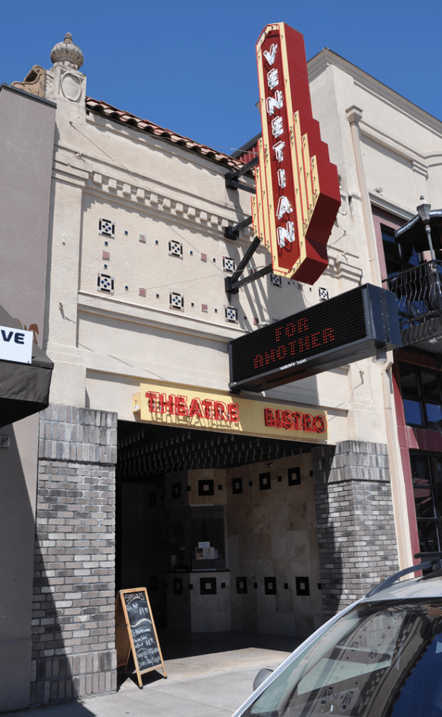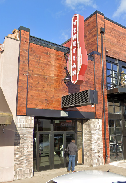 The Venetian Theatre in Hillsboro, OR has been through a lot since it was built in 1911 as the Grand Theatre. It later operated as the Liberty Theatre before becoming the Venetian Theatre. After that, it became the Town Theatre. Then, in 2008, it began housing the Venetian Theatre Bistro, a theatre and restaurant. The current sign was built then but the original facade (well, the top half anyway) was still visible: