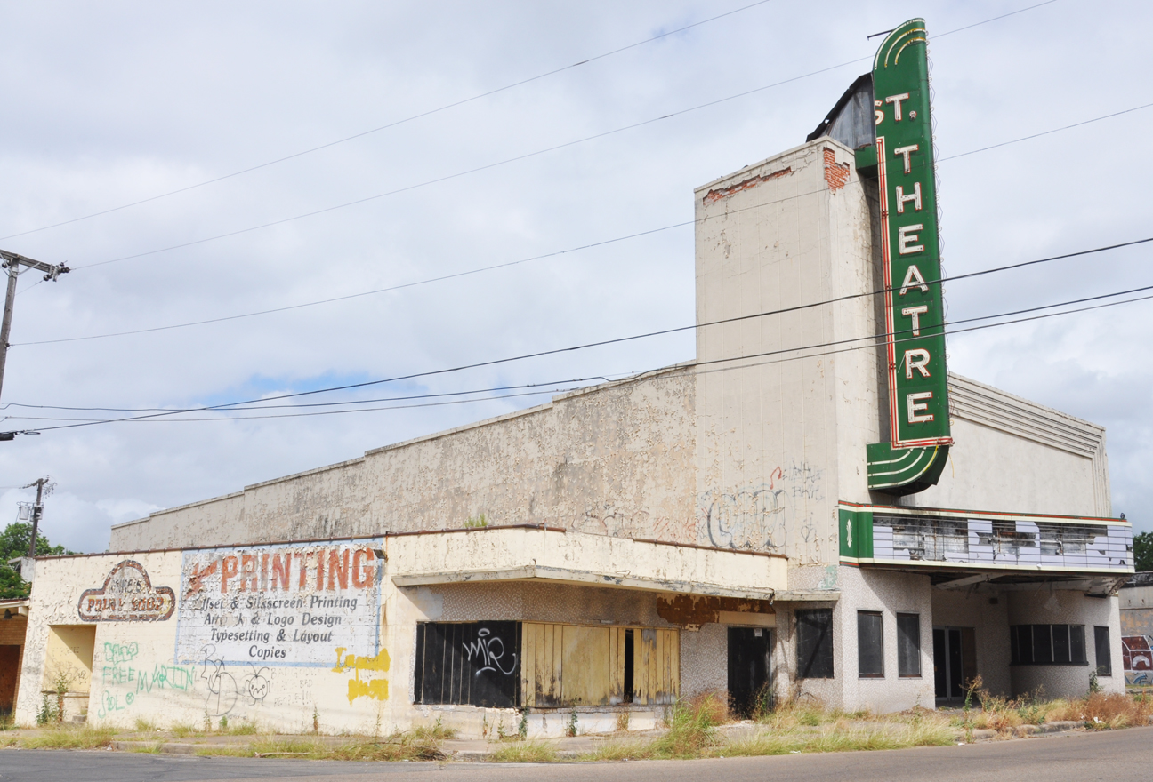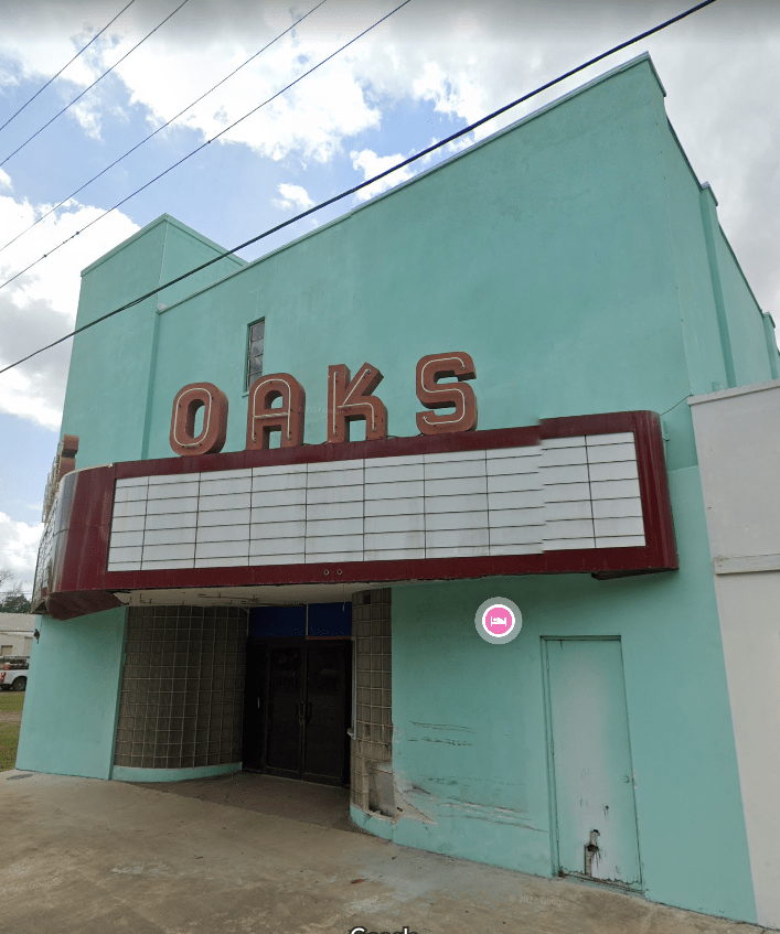 The former Oaks Theatre in Columbus, TX had grimy white paint for many years. It was repainted earlier this year. Seafoam is much nicer than gray!