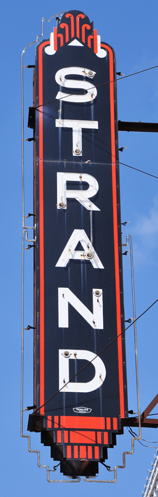 The Strand Theatre in Marlin, TX has been closed since at least the 1980s. The sign was removed earlier this year. I’m assuming it’s gone for good because the steel supports attached to the building are gone as well: