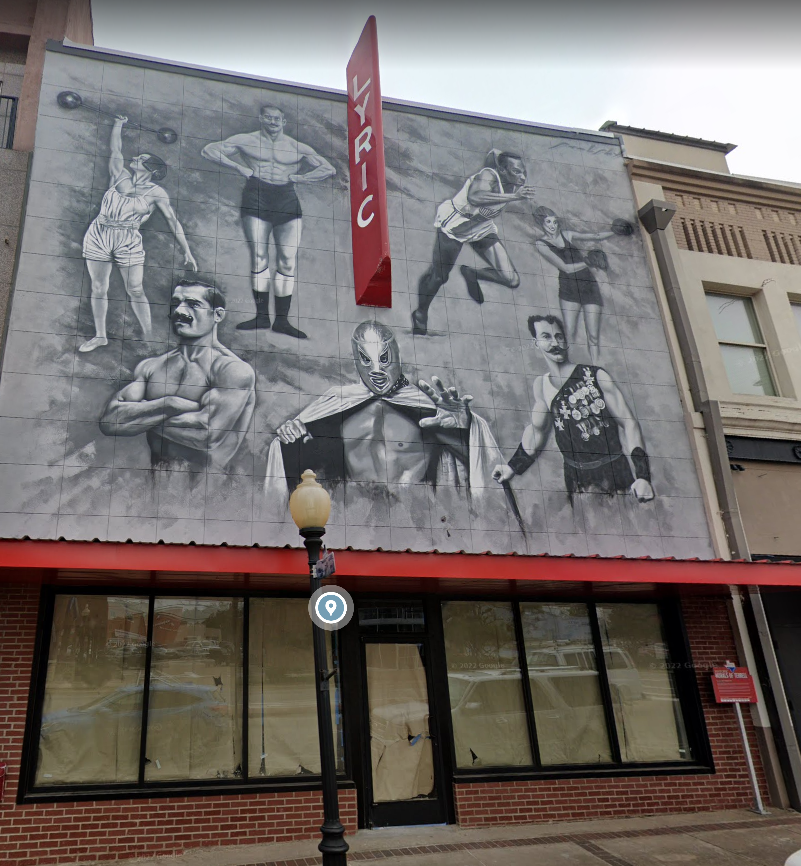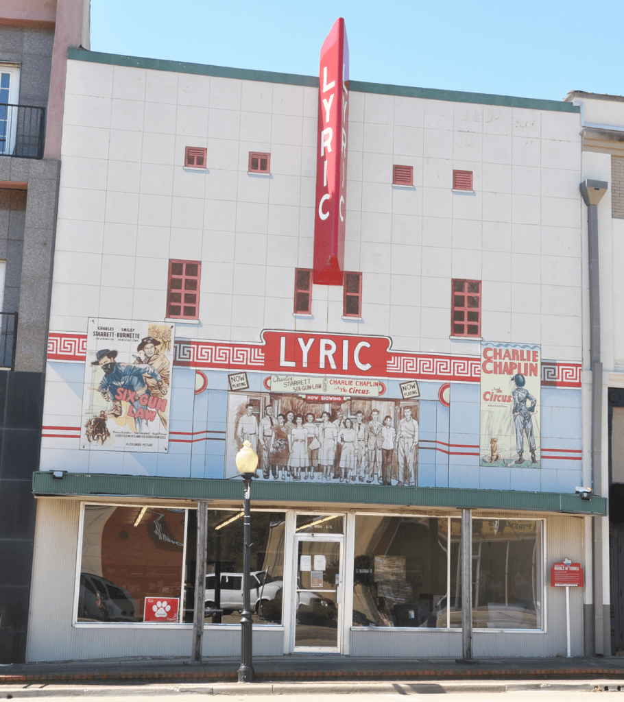 The long-closed Lyric Theatre in Terrell, TX has also been repainted. From this:
